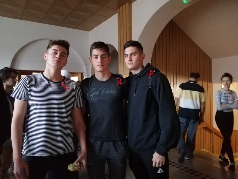 Naša škola sa aj tento rok zapojila do celosvetovej kampane, ktorej cieľom je šírenie povedomia o víruse HIV a ním spôsobenou chorobou AIDS. Tomuto projektu je od roku 1988 venovaný 1. december, ktorý je vyhlásený za medzinárodný deň boja proti HIV a AIDS, a s ním spojená osveta, ktorá má upozorniť na nebezpečnosť tohto vírusu, jeho prenos a prevenciu voči nemu. Červená stužka je symbolom solidarity a empatie vyjadrenej ľuďom žijúcim s týmto zdravotných postihnutím a aj na pamiatku tých, ktorí v dôsledku tohto vírusu zomreli. Najmä počas 1. decembra si ľudia z celého sveta na seba pripínajú červenú stužku, aby dali najavo, že téma HIV a AIDS im nie je ľahostajná. HIV a AIDS je globálny problém, ktorý sa týka každého z nás, preto žiaci aj na našej škole podporili kampaň rôznymi aktivitami ako bolo napríklad zhotovenie nástenky na túto tému umiestnenej na hlavnú chodbu, rozdávanie červených stužiek a informačných brožúrok počas prestávok a zhotovenie dotazníka, ktorý mal otestovať vedomosti žiakov. K príležitosti 1. decembra taktiež prebiehali prednášky venované HIV a AIDS určené najmä žiakom prvého ročníka, ktorých zámerom je edukovať o tejto problematike. Vyvrcholením tohto projektu bolo vytvorenie živej červenej stužky na školskom ihrisku, čoho sa zúčastnili nielen študenti, ale aj profesori oblečení do červených farieb. Ďakujeme všetkým, ktorí sa aktívne zapojili do tejto akcie.
