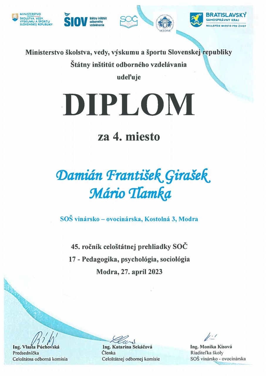 Tlamka Mário (III. A) – 3. miesto a zároveň postup do celoštátneho kola