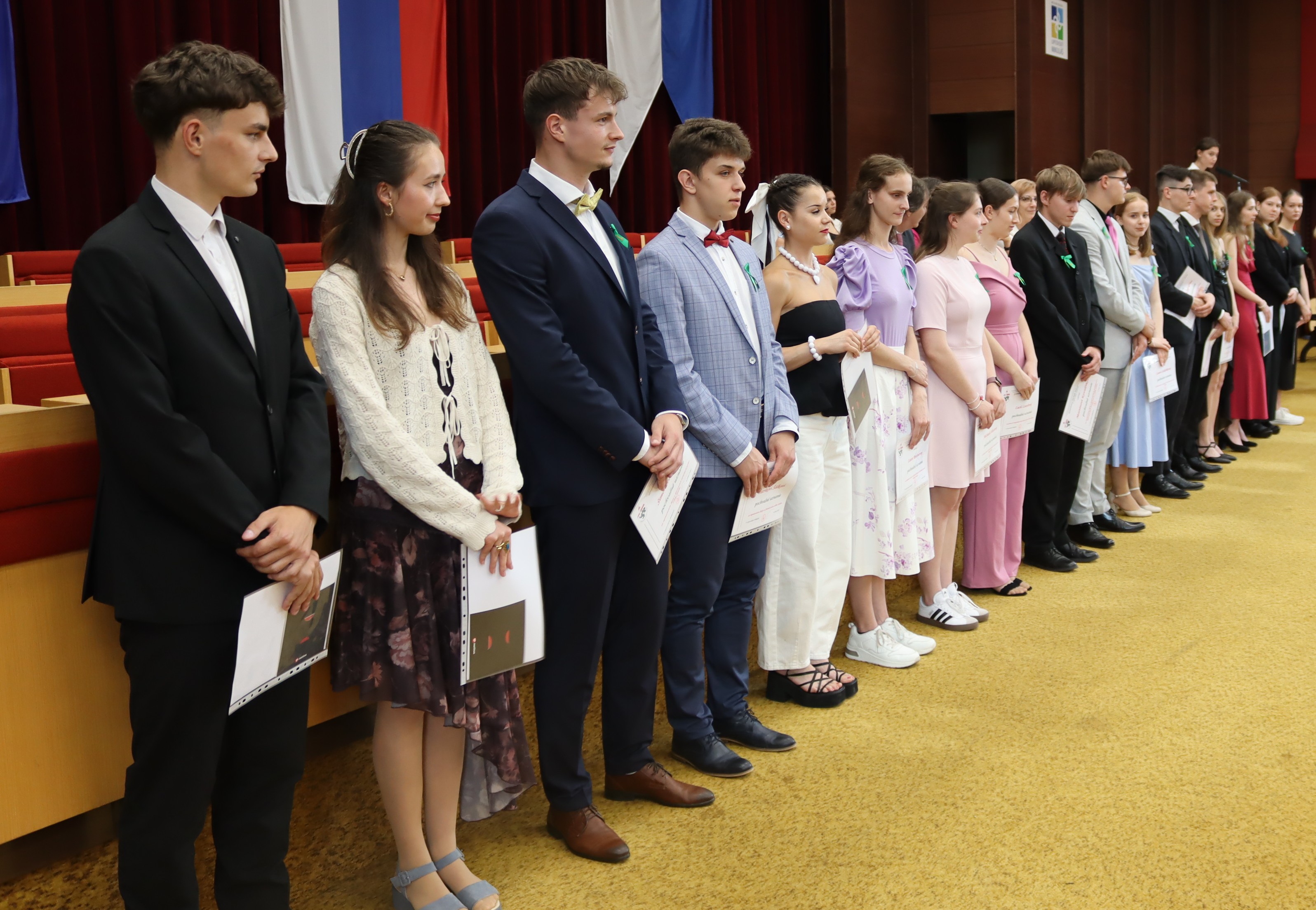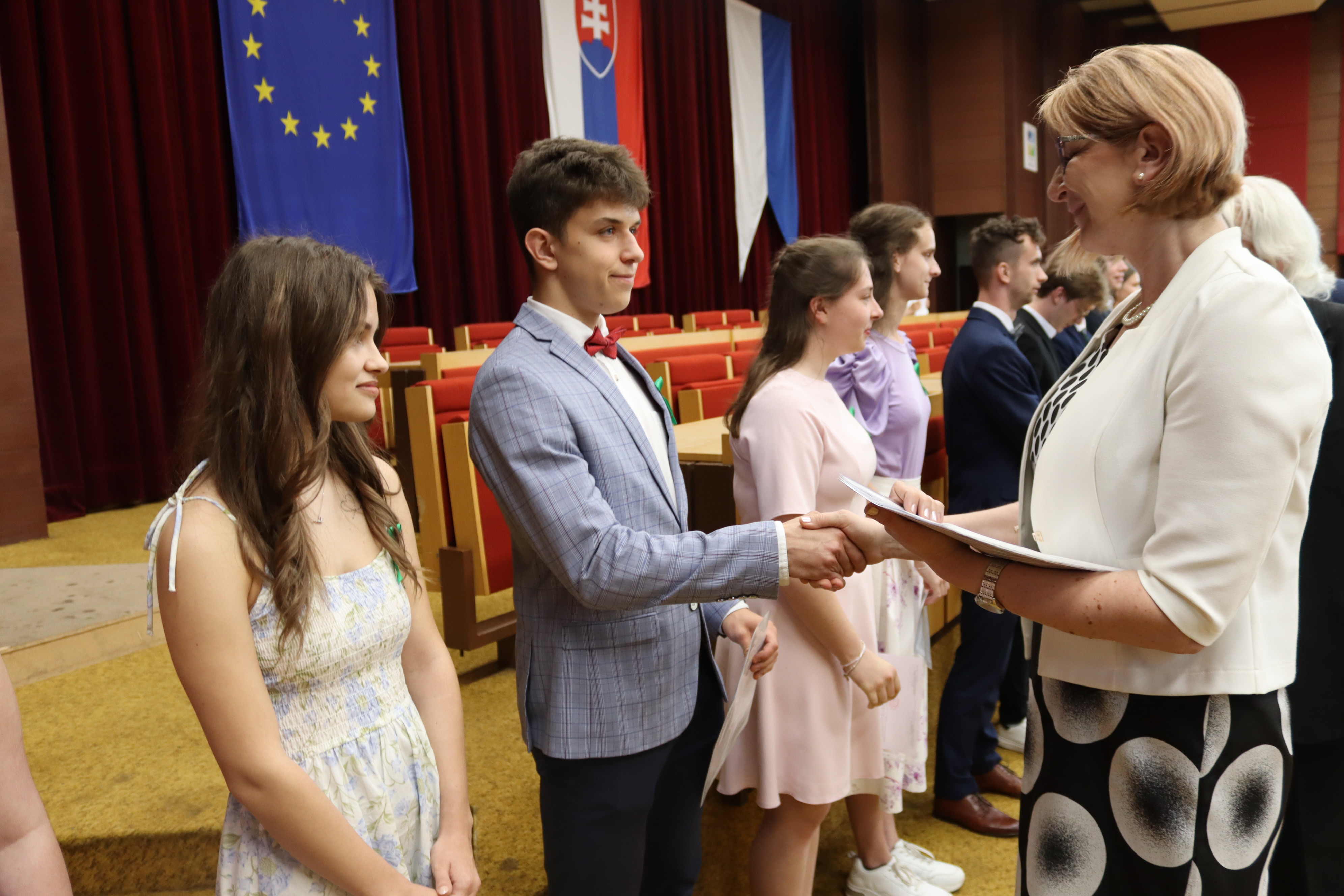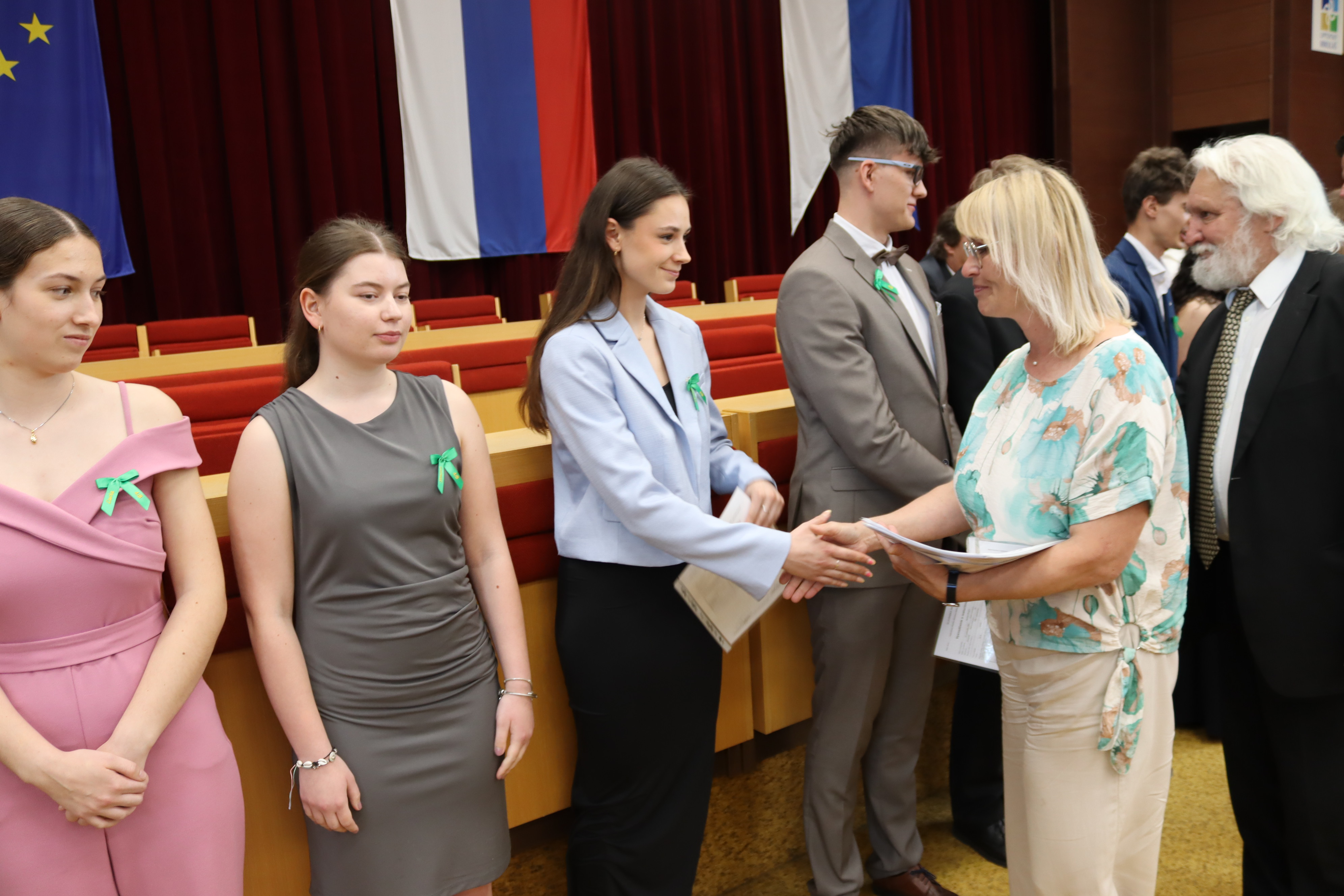 V piatok 6. júna 2025 sme vo veľkej zasadačke Mestského úradu slávnostne odovzdali našim absolventom maturitné vysvedčenia a zároveň ocenili najúspešnejších z nich.