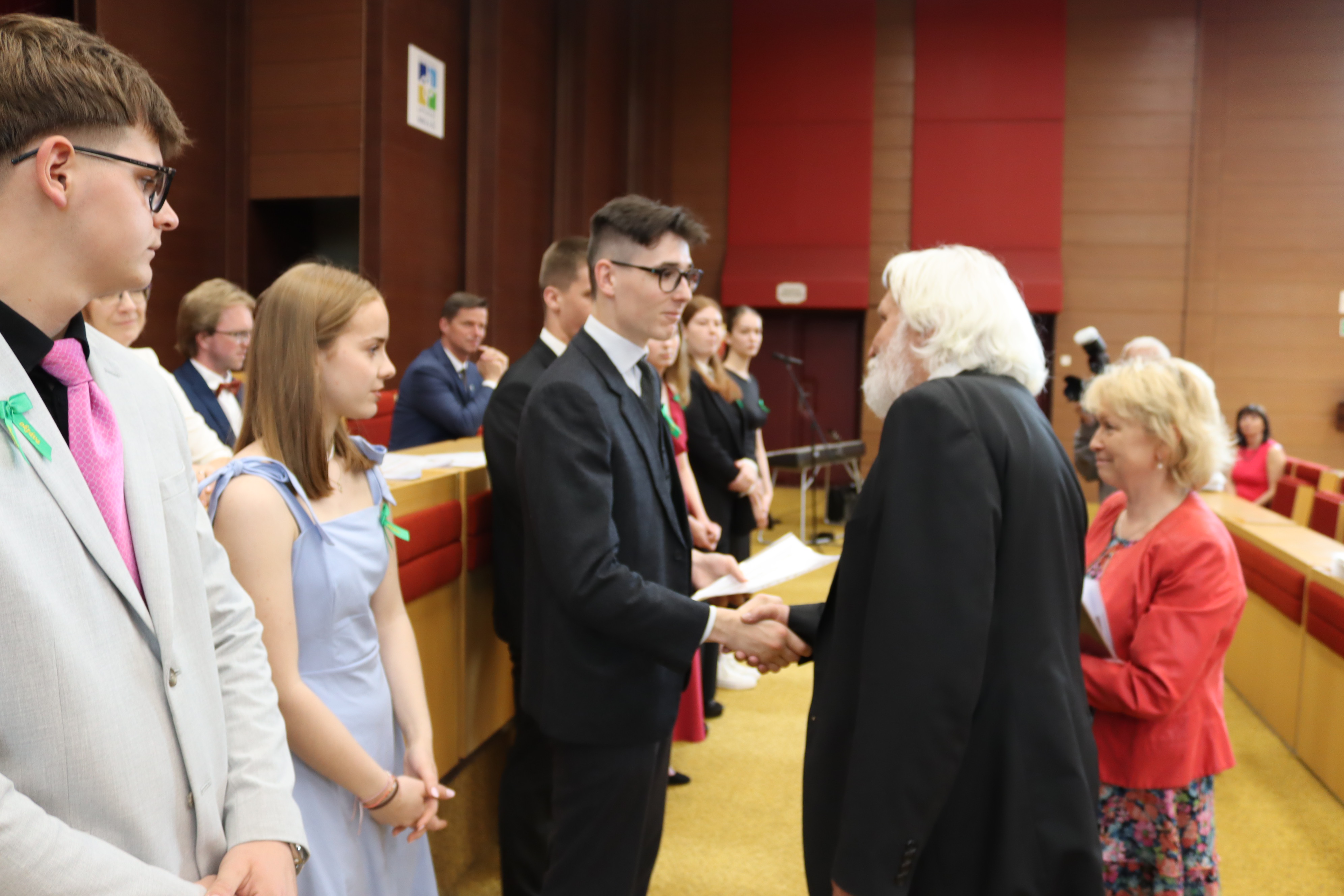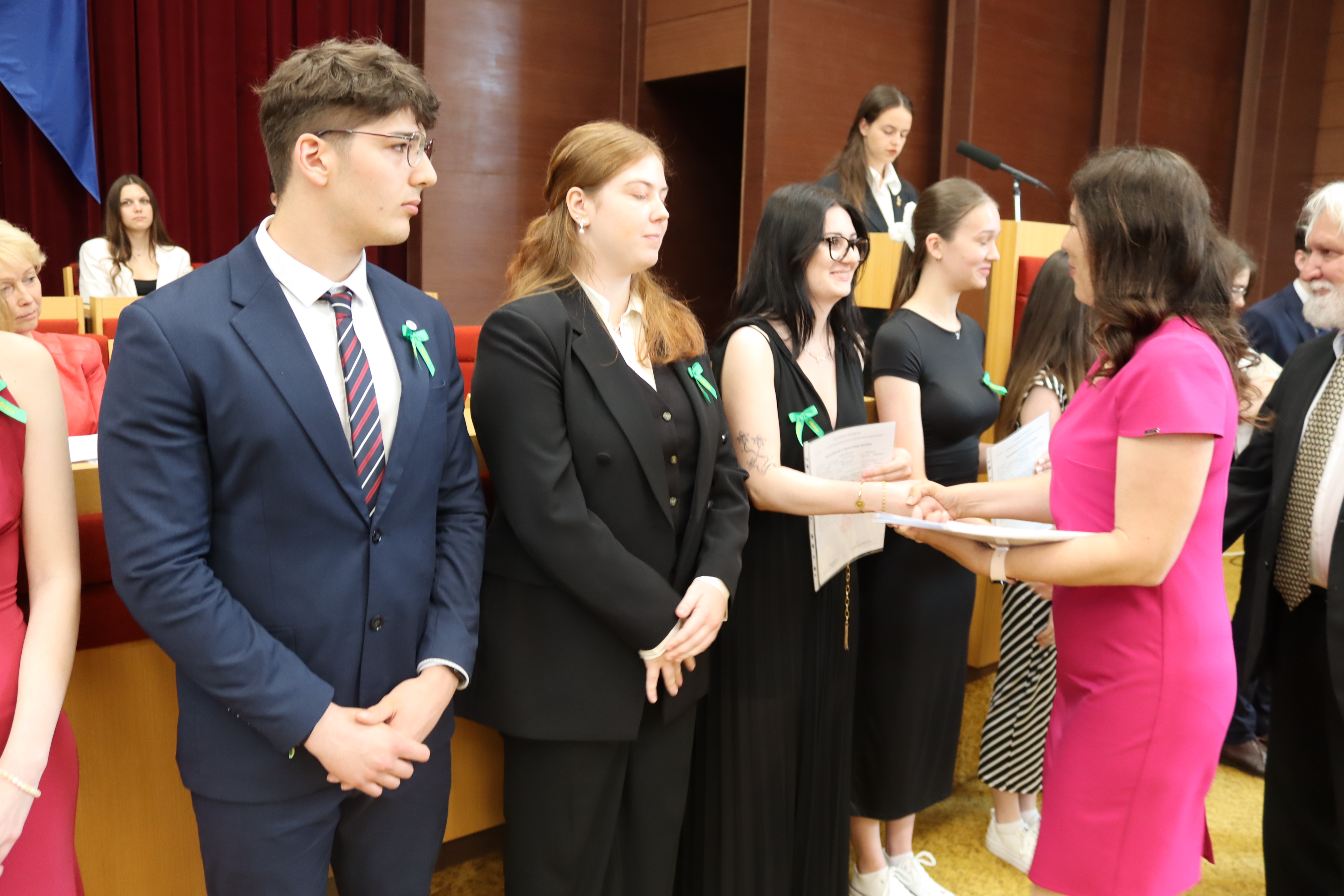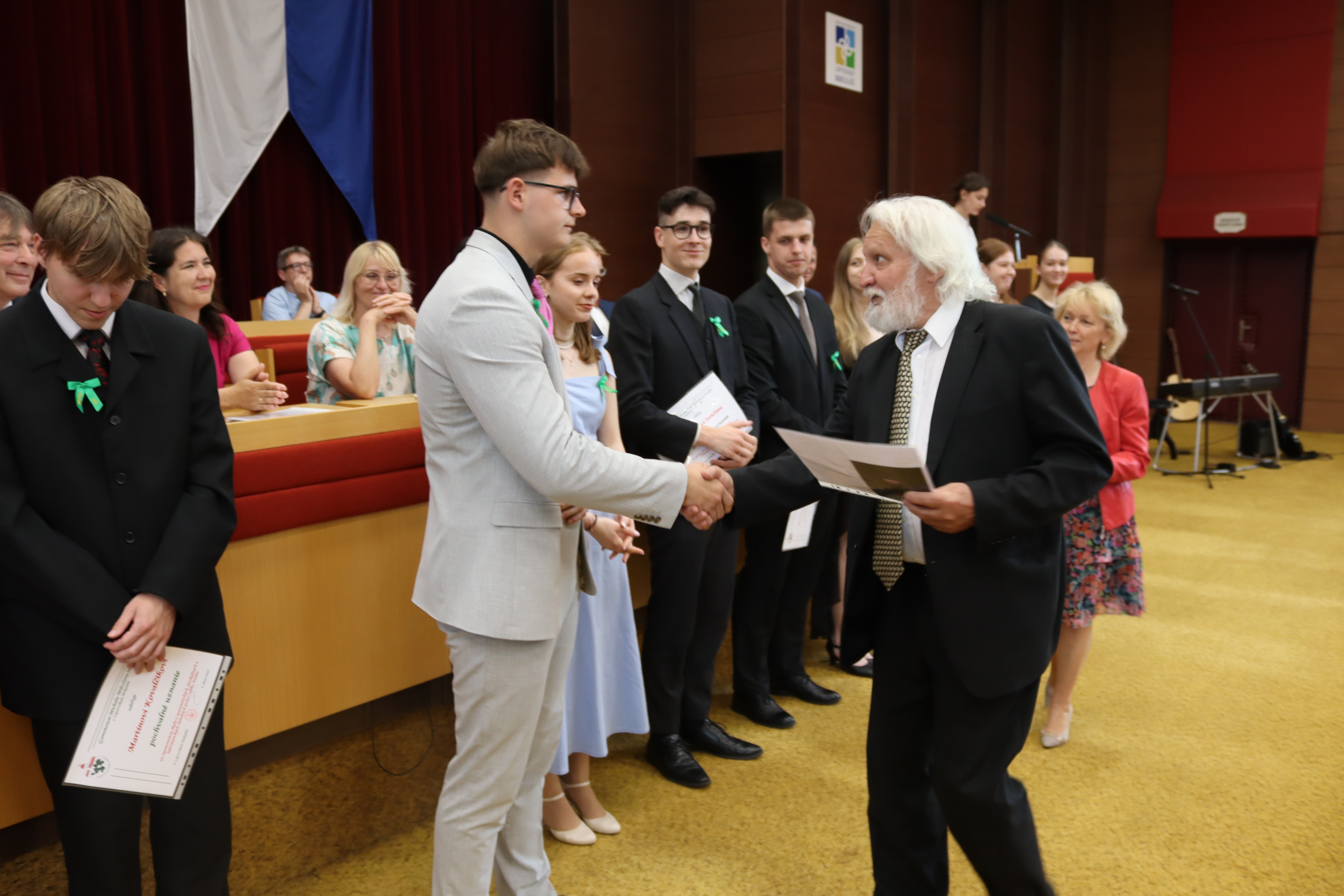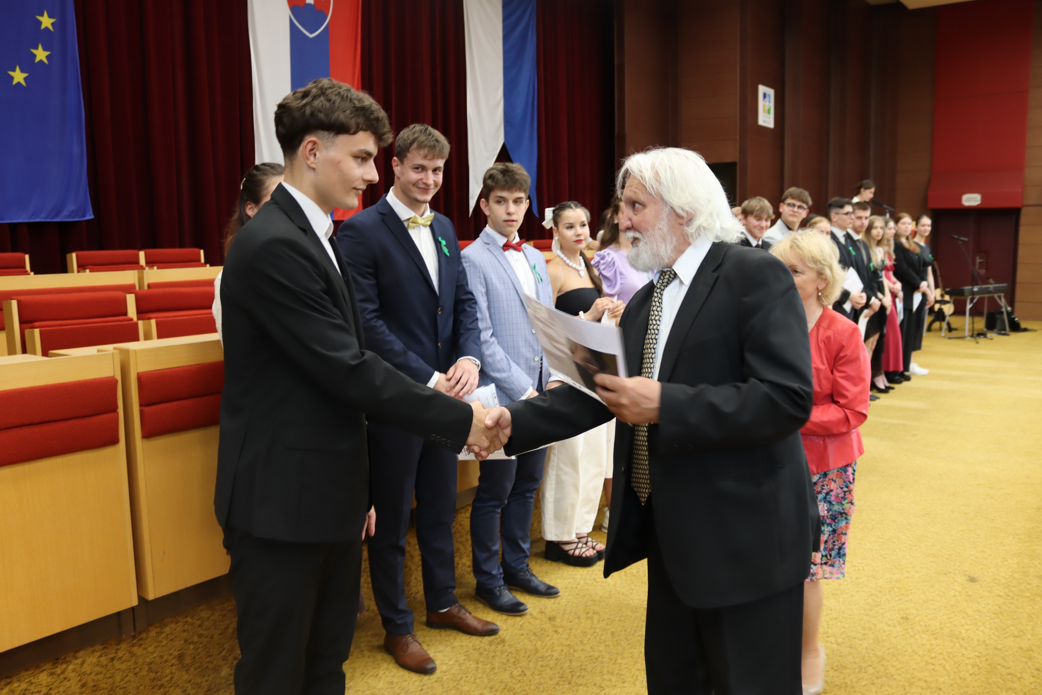 V piatok 6. júna 2025 sme vo veľkej zasadačke Mestského úradu slávnostne odovzdali našim absolventom maturitné vysvedčenia a zároveň ocenili najúspešnejších z nich.